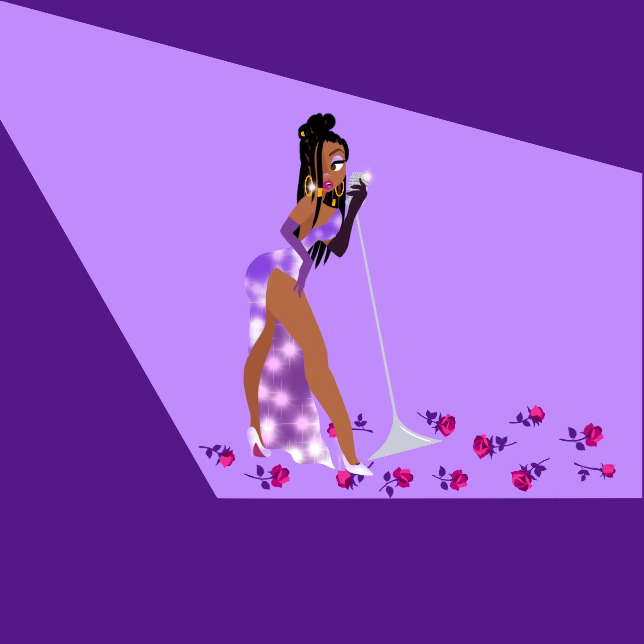 The song is supposed to be a new take on romantic love letters, implementing elements of self-growth and empowerment, dedicated to past lovers who have not been appreciative during the relationship. The client mentioned that the colour purple heavily resonates with her and wanted to include elements of roses. Elements that signify wisdom, love, spirituality, royalty, and mystery.